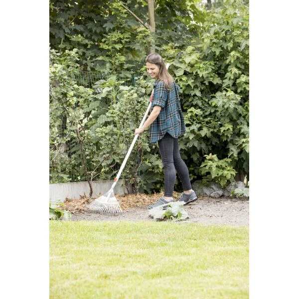Met één steel kan je een groot aantal gereedschappen combineren waardoor je heel wat ruimte bespaart in de garage, berging of tuinhuis. Er zijn verschillende soorten stelen in verschillende lengtes verkrijgbaar. Zo heb je altijd de juiste steel voor het juiste gereedschap alsook de optimale lengte om ergonomisch te kunnen werken. De verstelbare bladhark klikt vlot in en uit de steel dankzij de handige schuiver maar zit tijdens het gebruik toch stevig vast.