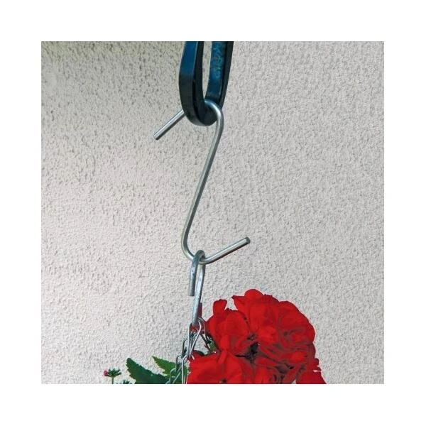 Handige ophanghaken voor het omhoog hangen van tuinornamenten zoals hanging baskets, vogelvoedertafels, tuinlantaarns of allerhande gereedschap in de tuinberging of de serre.