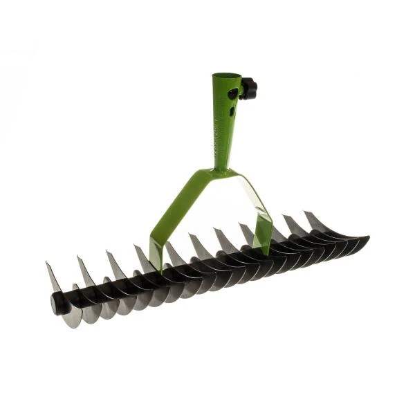 Deze hark heeft twee harkbreedtes (11 of 21 tanden) waarmee je het vilt en het mos uit jouw gazon weg haalt. Zo breek je de bodem open zodat water, zuurstof en voedingsstoffen terug tot bij de graswortels geraken en het gazon kan opfleuren.