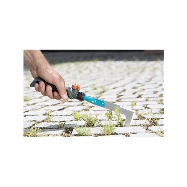 De GARDENA combisysteem voegenkrabber is het ideale hulpmiddel voor het verwijderen van mos en onkruid tussen stenen en langs wandranden. Het geslepen, dubbelzijdig mes is gemaakt van gehard roestvrij staal.